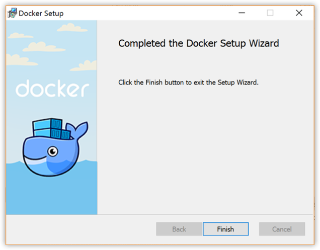 You will be asked to authorize Docker.app with your system password after you launch it. Privileged access is needed to install networking components and links to the Docker apps. The whale in the top status bar indicates that Docker is running, and accessible from a terminal. -